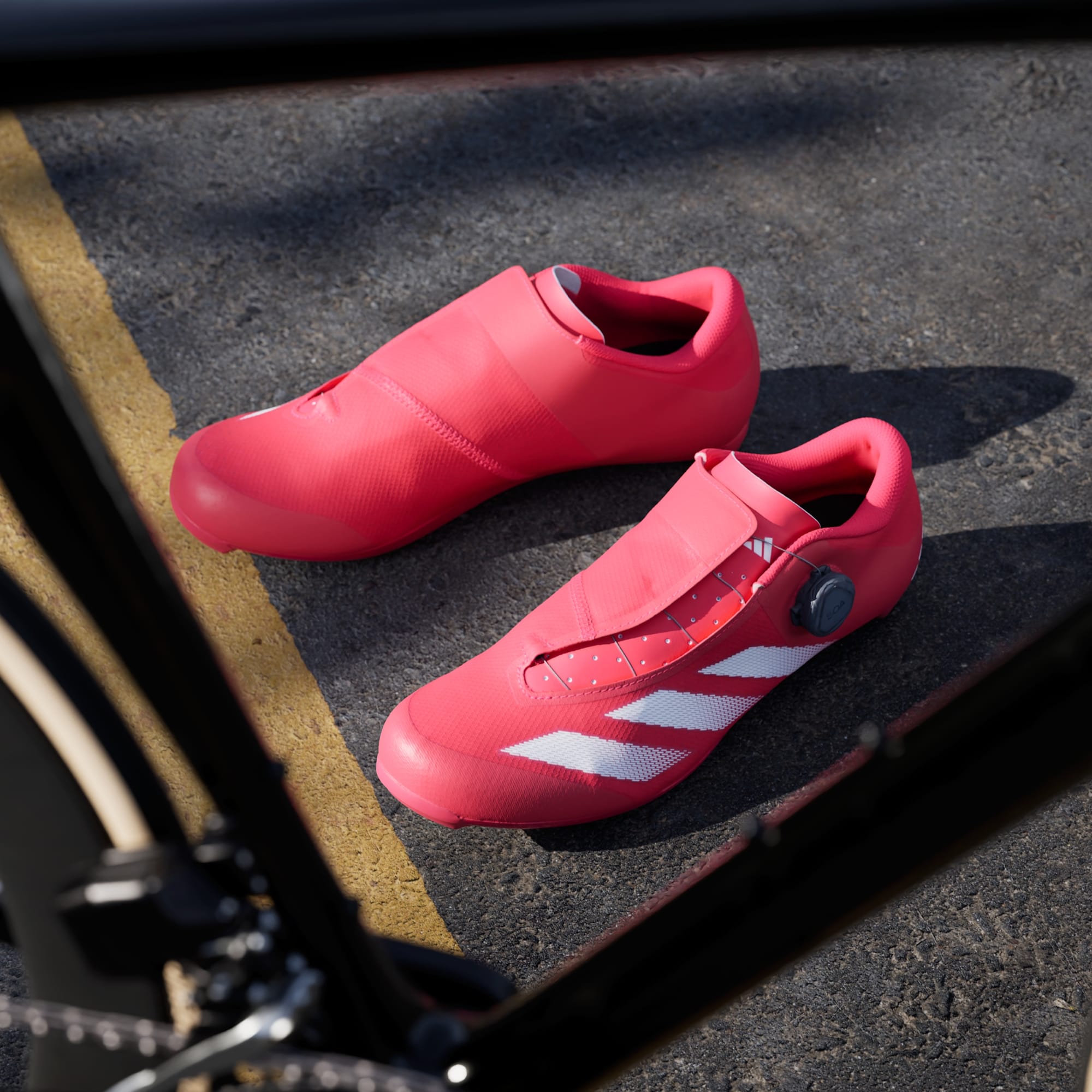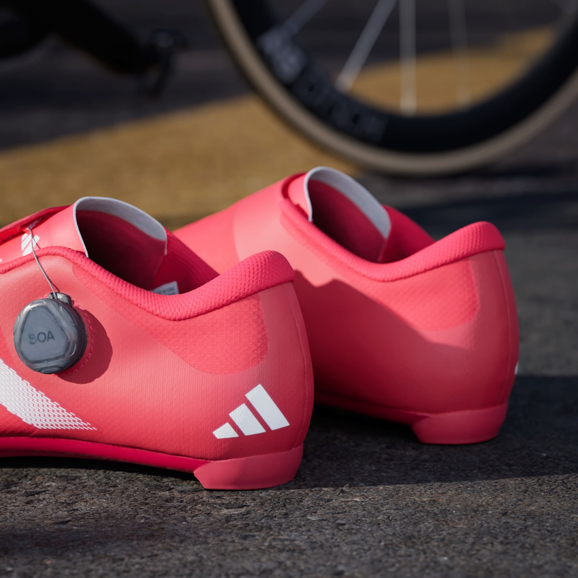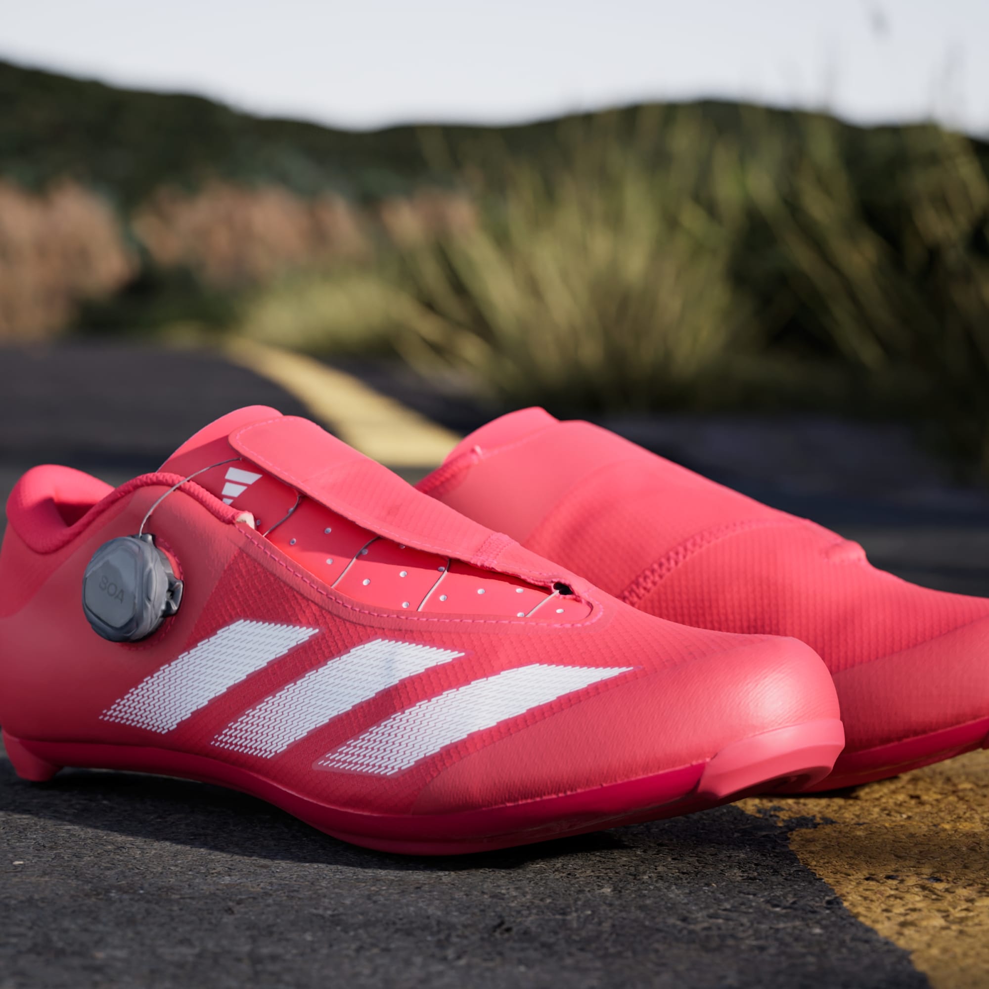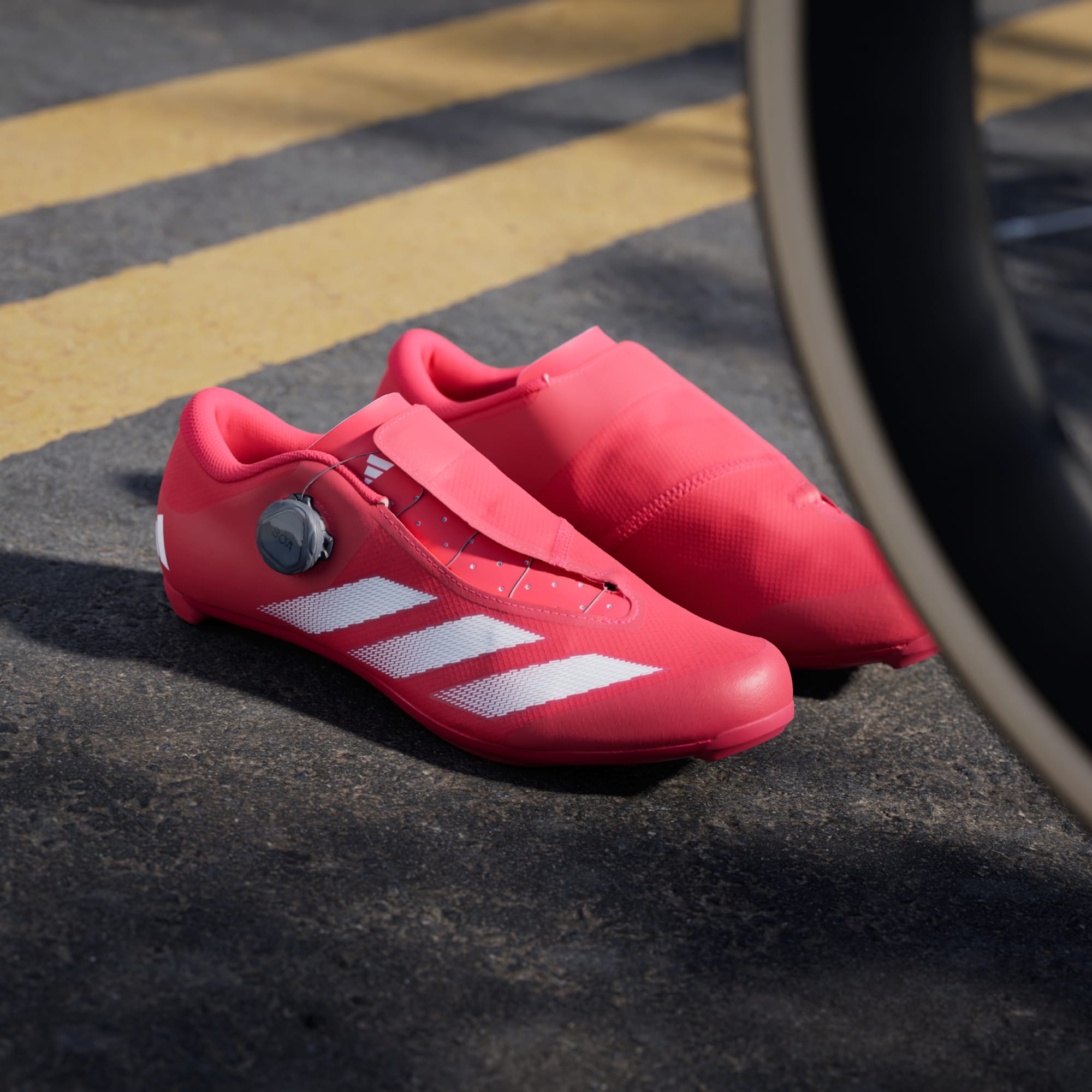 From club rides to routine training and race day, these adidas road cycling shoes offer a responsive feel and extended comfort on the bike. From the breathable mesh upper to the lined heel pocket, they adapt to your foot for a snug, comfortable fit. The BOA® Fit System lets you micro-adjust the tension with a two-way dial that tightens and loosens the fit to match your effort. A fibreglass-reinforced midsole plate transfers power through every pedal stroke for efficient pedalling, and they are compatible with most 3-bolt road cleat systems. This product features at least 20% recycled materials. By reusing materials that have already been created, we help to reduce waste and our reliance on finite resources and reduce the footprint of the products we make.