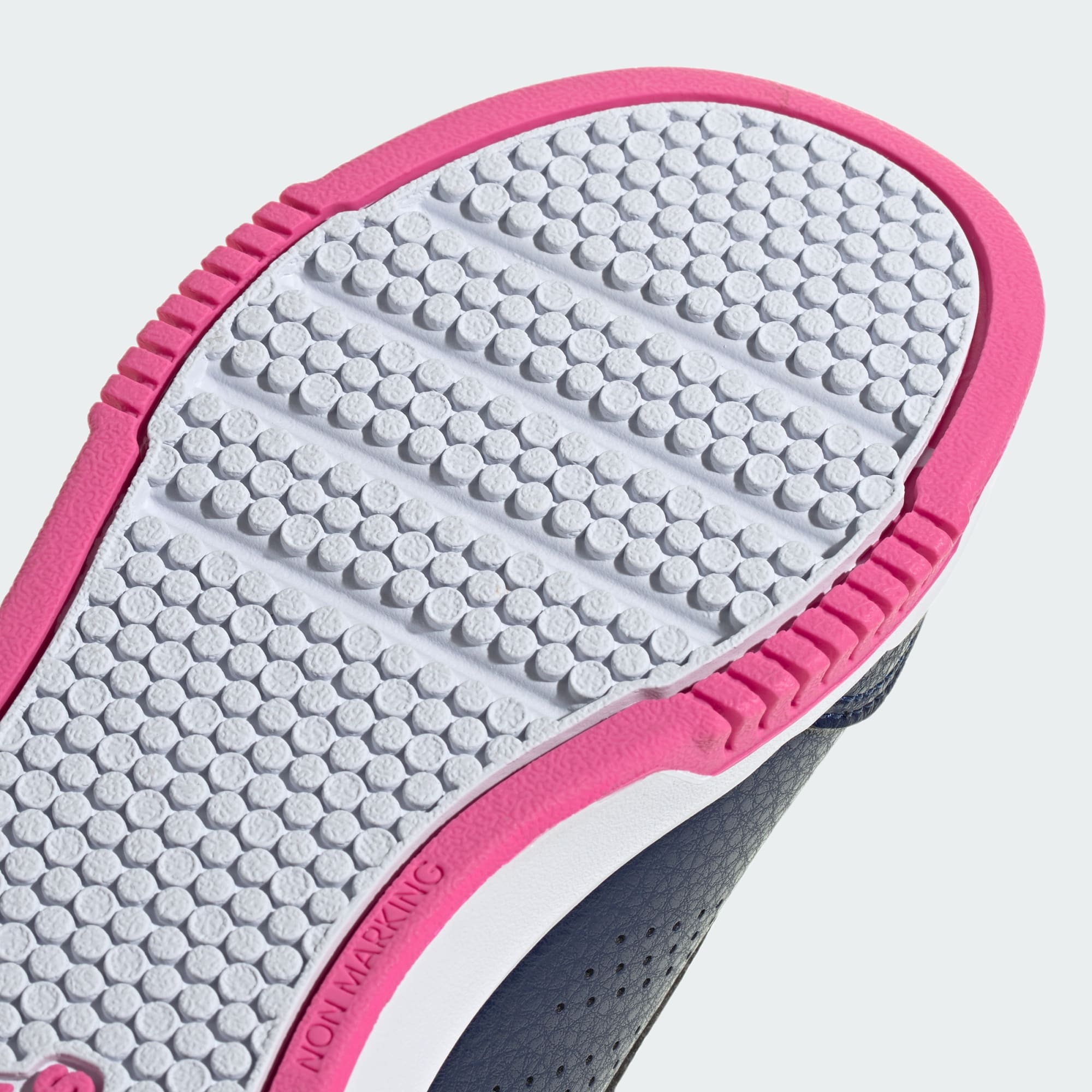 Spinning, striding, leaping or sprinting, kids are constantly testing their shoes. Built with a sturdy, non-marking rubber outsole, these adidas trainers grip the ground while leaving floors exactly how they found them. And the two hook-and-loop straps on each shoe are easy to fasten when they're on the go. Made with a series of recycled materials, this upper features at least 50% recycled content. This product represents just one of our solutions to help end plastic waste.