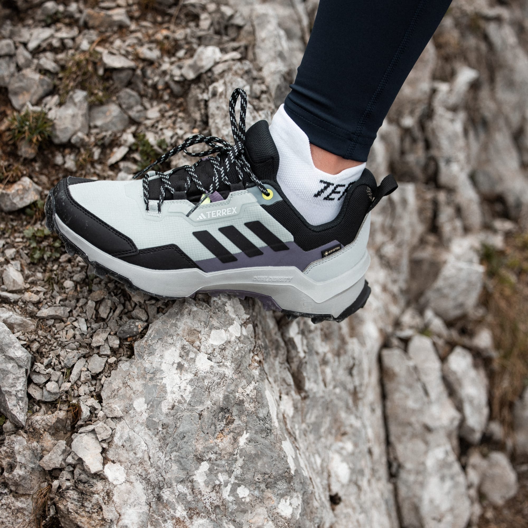 The outdoors is made for exploring, and these adidas waterproof Terrex hiking shoes are built to explore high and low, near and far. Their multi-sport design is light enough for day hikes and technical enough for alpine scrambles and via ferratas. They support your feet with a lightweight yet rugged and stable feel, so you can focus on your route. Waterproof, breathable GORE-TEX seals out water and mud while letting your feet breathe. A gusseted tongue and padded cuff hug the foot and seal out dust and debris for running-shoe-inspired comfort. The all-conditions grip of Continental™ Rubber means you can move with confidence across rocky scree, wet roots and loose, dusty trails. Lace up, and get out there.