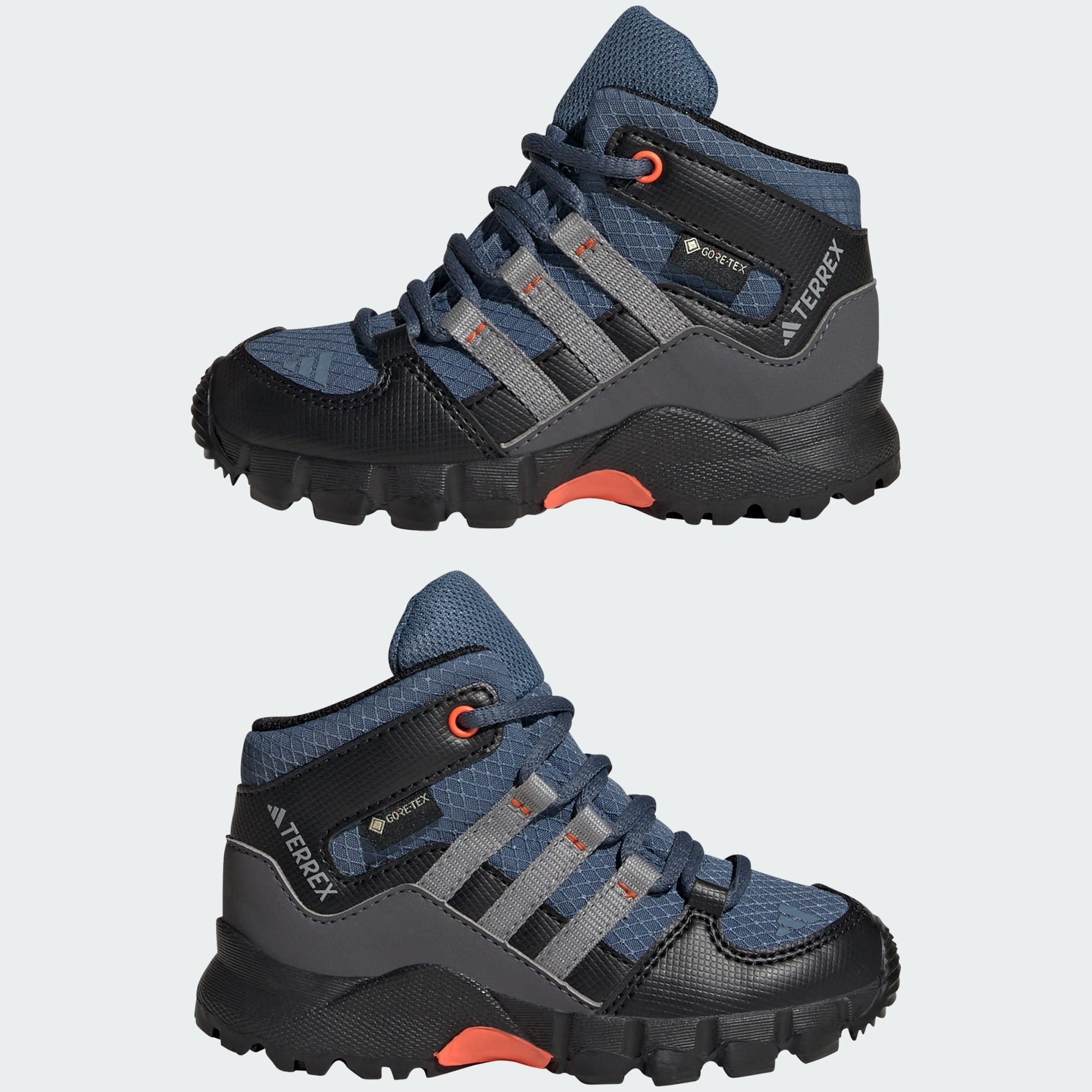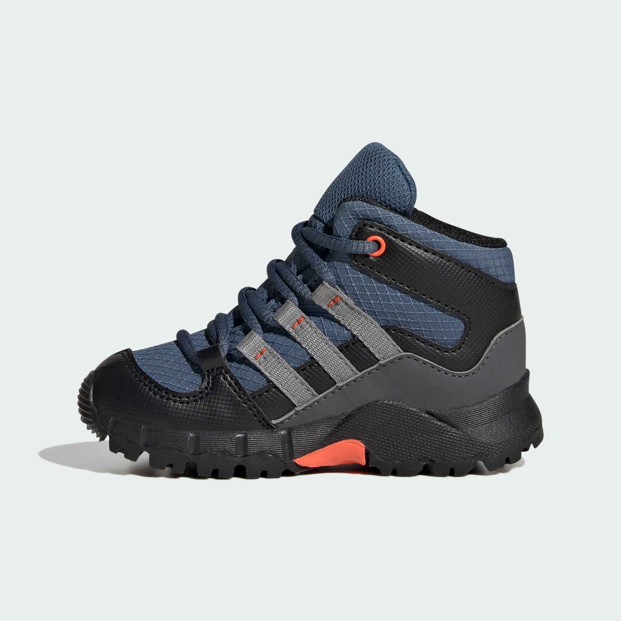 Just like the big kids. These adidas Terrex hiking shoes are made with tiny feet and adventure in mind. Waterproof, breathable GORE-TEX seals out water to keep kids' feet dry and comfortable in wet, muddy conditions. A lightweight EVA midsole cushions every step, whether kids are exploring the backyard or discovering the wider outdoors. The Traxion rubber outsole offers confident traction on slippery roots, rocks and uneven surfaces. By choosing recycled, we are able to reuse materials that have already been created, which helps to reduce waste. Renewable materials choices will help us to remove our reliance on finite resources. Our products made with a blend of recycled and renewable materials feature at least 20% total of these materials.