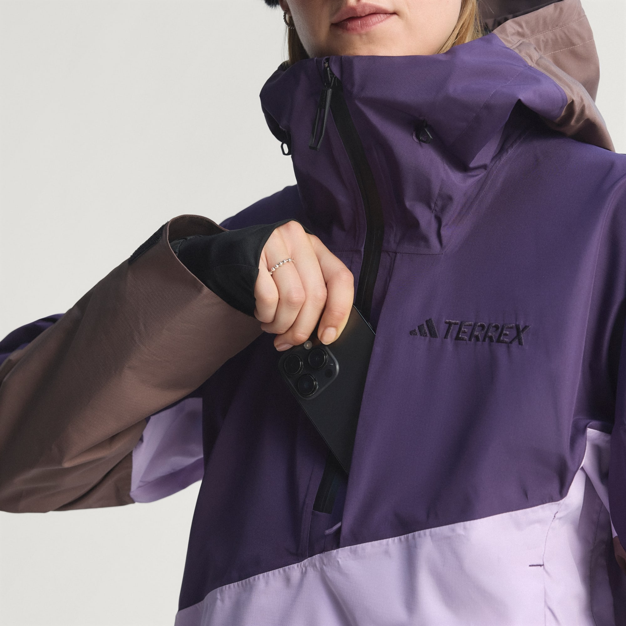 Freeride-inspired and ready for active adventure, this adidas Terrex anorak ski and snowboard jacket has you covered on the mountain. CLIMAPROOF locks out weather and helps sweat escape for dry, comfortable and unrestricted performance. It's waterproof and breathable with a relaxed fit that allows easy layering. A full set of snow-specific features, including a snow skirt, underarm vents and heat seal cuffs, keep you focused on riding. CLIMAPROOF locks out storms with waterproof materials and design to block harsh weather. Stay free from wind with wind-resistant and breathable material for extra comfort. Engineered features boost protection and breathability.