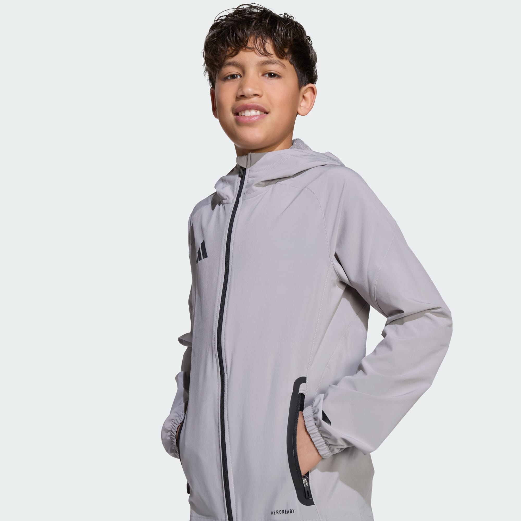 Designed for footballers on the go, this juniors' Tiro 25 Competition jacket from adidas keeps you comfortable on short hops and long treks. The slim fit flexes with your movements so you're always where you need to be. AEROREADY manages moisture to leave distractions in your wake. A secure space for travel essentials like phones and passports, zip pockets add extra utility. This product is made with at least 70% recycled materials. By reusing materials that have already been created, we help to reduce waste and our reliance on finite resources and reduce the footprint of the products we make.
