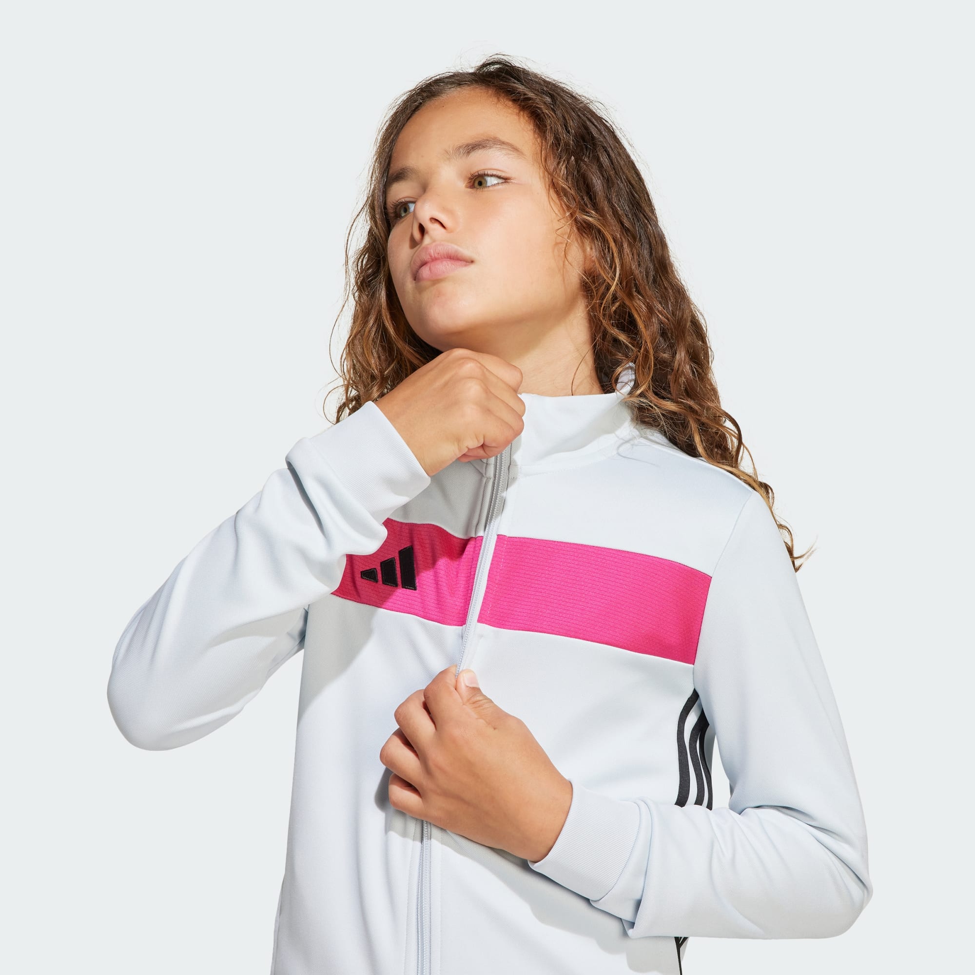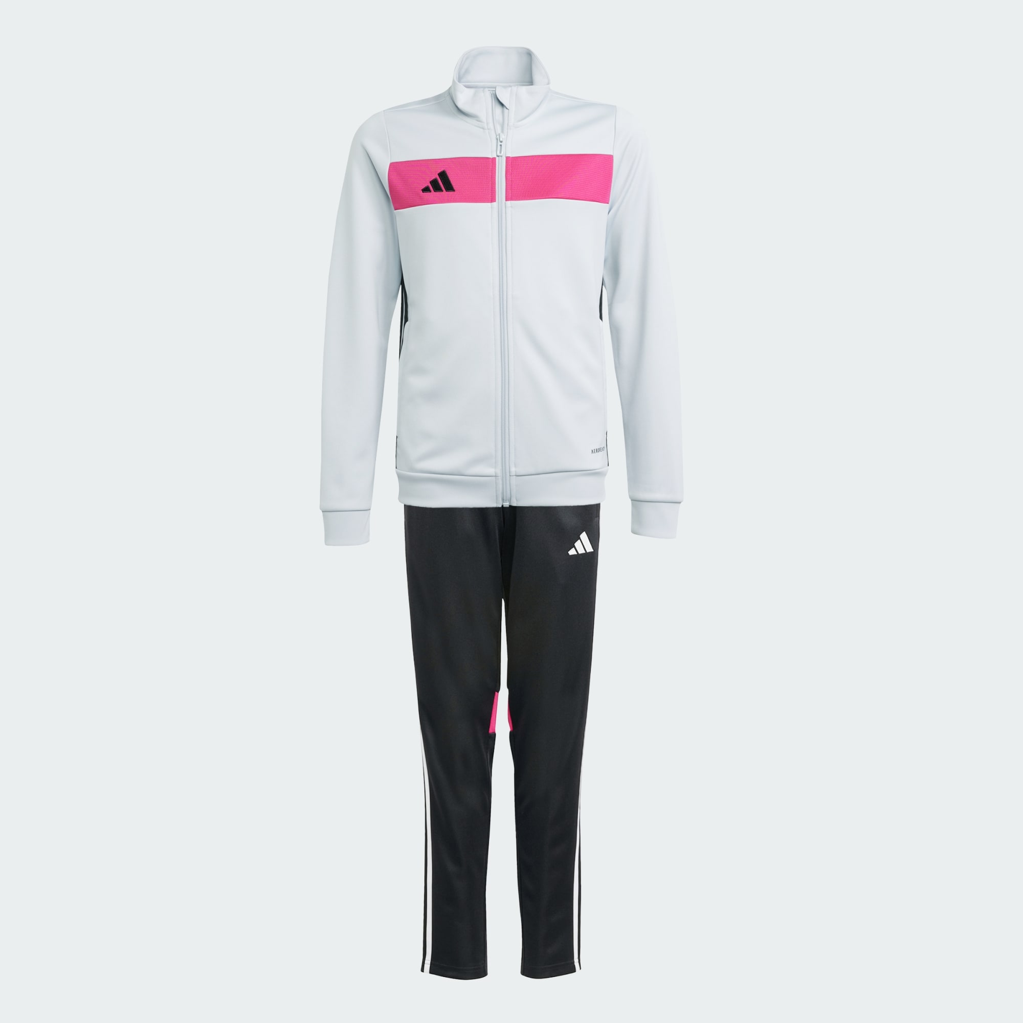 Take your off-field style up a notch. This juniors' track suit from adidas borrows from the beautiful game for a winning look. Moisture-managing AEROREADY keeps you dry when life shifts up a gear, whether you're heading to football training or backing your team. The sleek build and bold styling bring energy to your look as you take on new challenges. This product is made with 100% recycled materials. By reusing materials that have already been created, we help to reduce waste and our reliance on finite resources and reduce the footprint of the products we make.