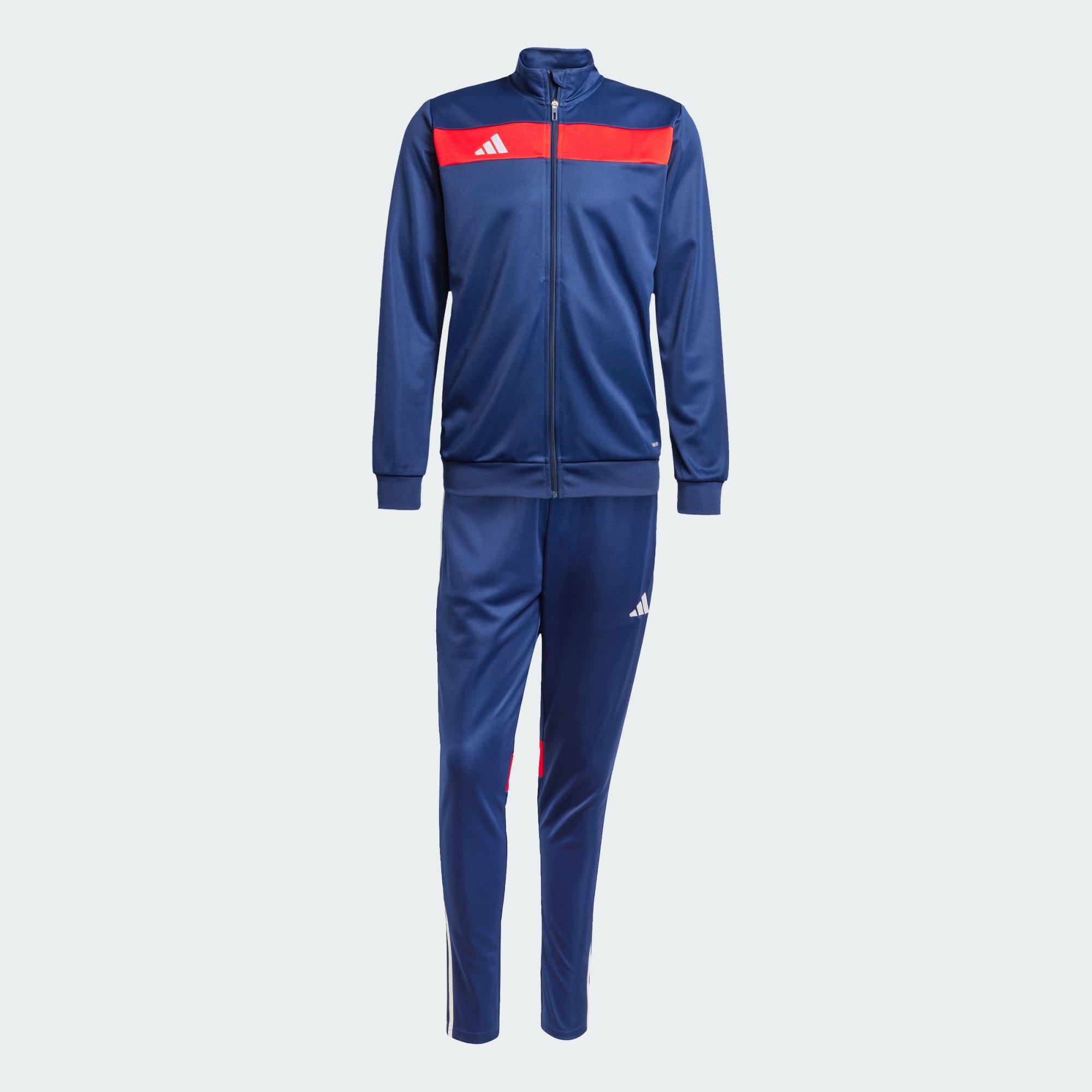Take your off-field style up a notch. This track suit from adidas borrows from the beautiful game for a winning look. Moisture-managing AEROREADY keeps you dry when life shifts up a gear, whether you're heading to football training or backing your team. The sleek build and bold styling bring energy to your look as you take on new challenges. This product is made with 100% recycled materials. By reusing materials that have already been created, we help to reduce waste and our reliance on finite resources and reduce the footprint of the products we make.