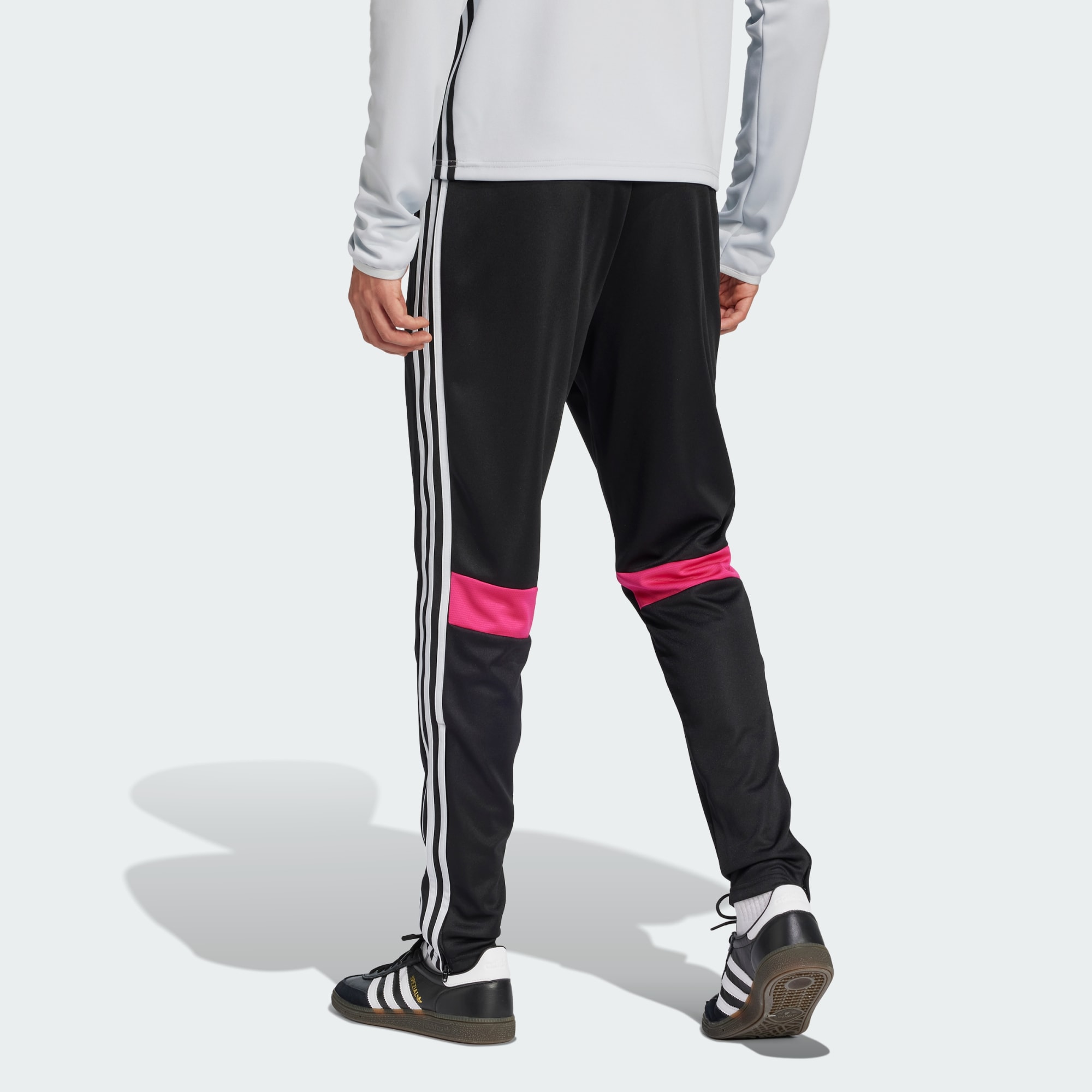 Bring your beautiful game everywhere you go. These Tiro 25 Essentials pants from adidas take their lead from football training apparel to offer a sporty look and comfortable feel. AEROREADY controls moisture to keep you dry, while zip pockets securely stow must-haves. With their smooth fabric and bold style, these track bottoms will quickly become first pick from your wardrobe.
