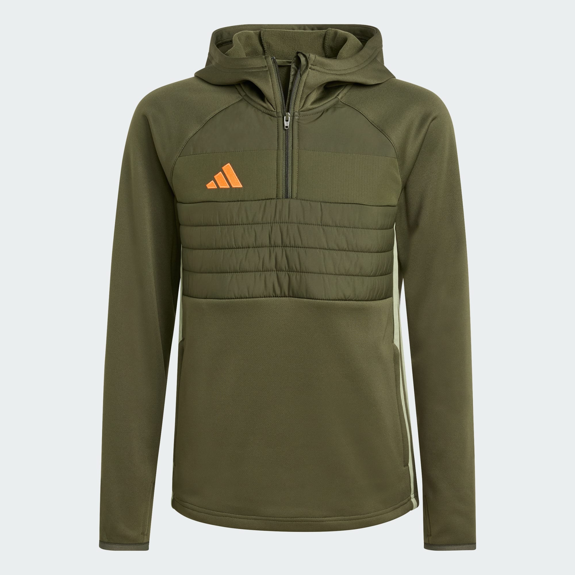 They'll stay warm and look sharp on the training pitch in this kids' Tiro 25 Essentials Winterized top. Combining football-inspired style with cosy fleece fabric and strategically placed padding, it will keep them focused on their game when the grass is thick with frost. Worn with the range's insulating track pants, this adidas pullover will completely lock out the cold until they're back in the changing room.