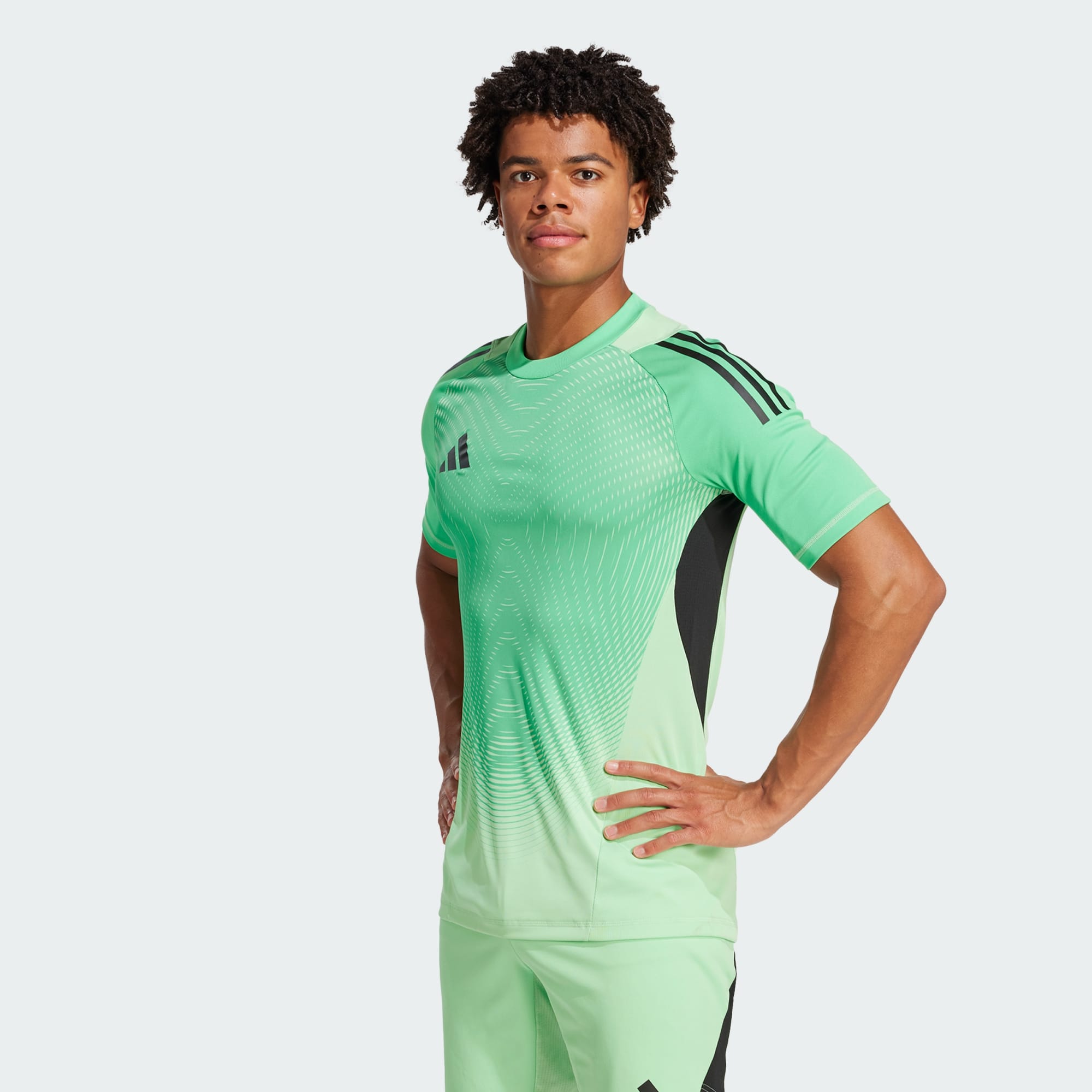 Be unbeatable between the posts in this range-topping adidas Tiro 25 Pro goalkeeper jersey. Packed with professional player-requested features, it's built for the modern goalie's dynamic movements. The slim, stretchy fit and raglan sleeves let you jump and dive with zero restrictions. Mesh panels and AEROREADY keep you cool and dry whenever your clean sheet is threatened. This product is made with 100% recycled materials. By reusing materials that have already been created, we help to reduce waste and our reliance on finite resources and reduce the footprint of the products we make.