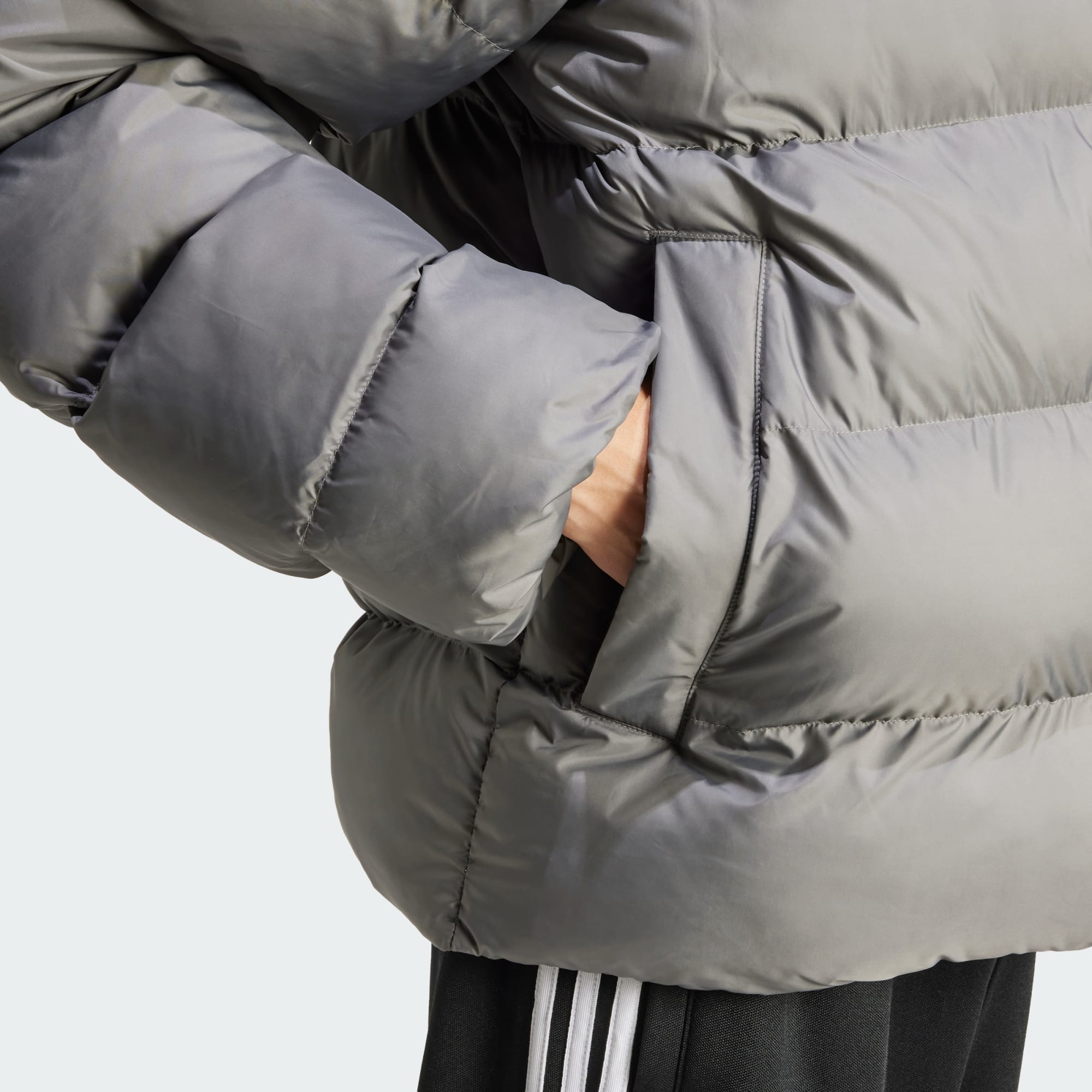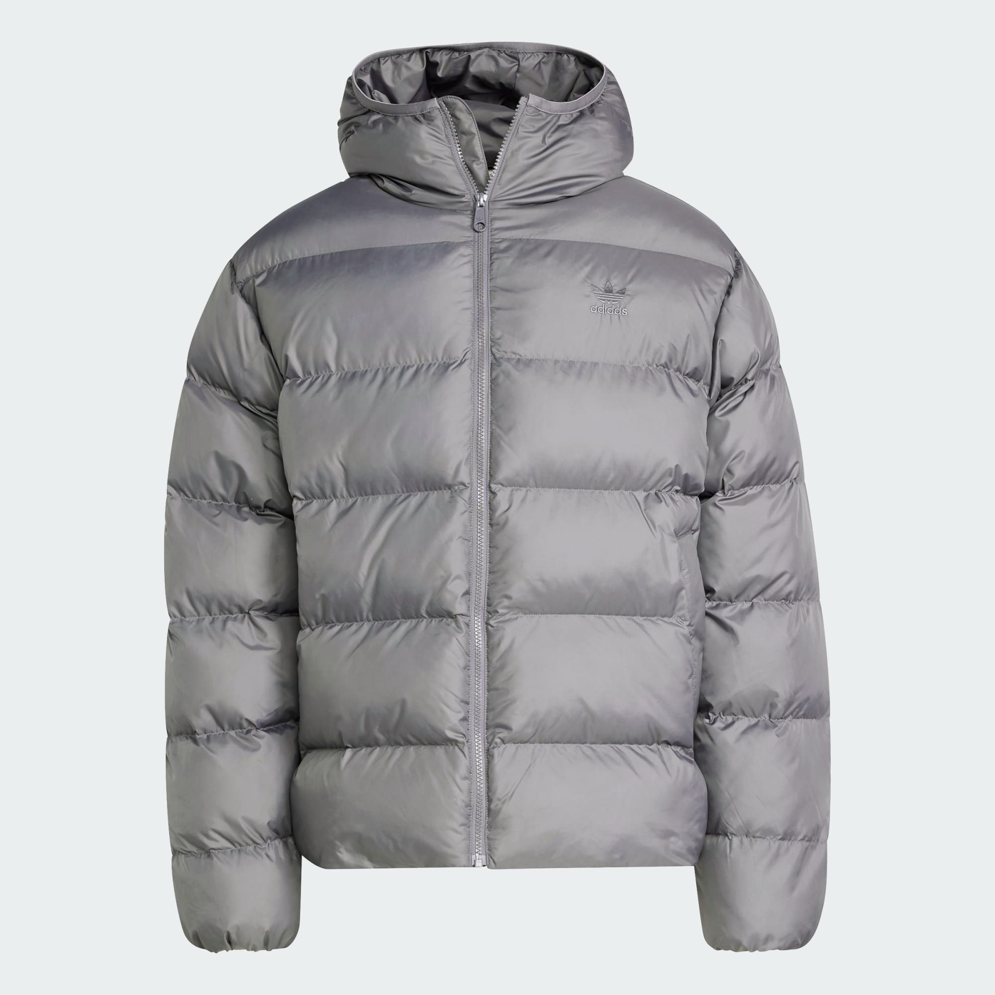 You'll want to return to the stylish simplicity of this adidas hooded puffer every time the weather turns chilly. Crafted in durable woven fabric for casual comfort, it fuses sporty heritage with a minimalist aesthetic. The full zip, high collar and elasticated details keep your body warmth in while side pockets let you warm your hands.