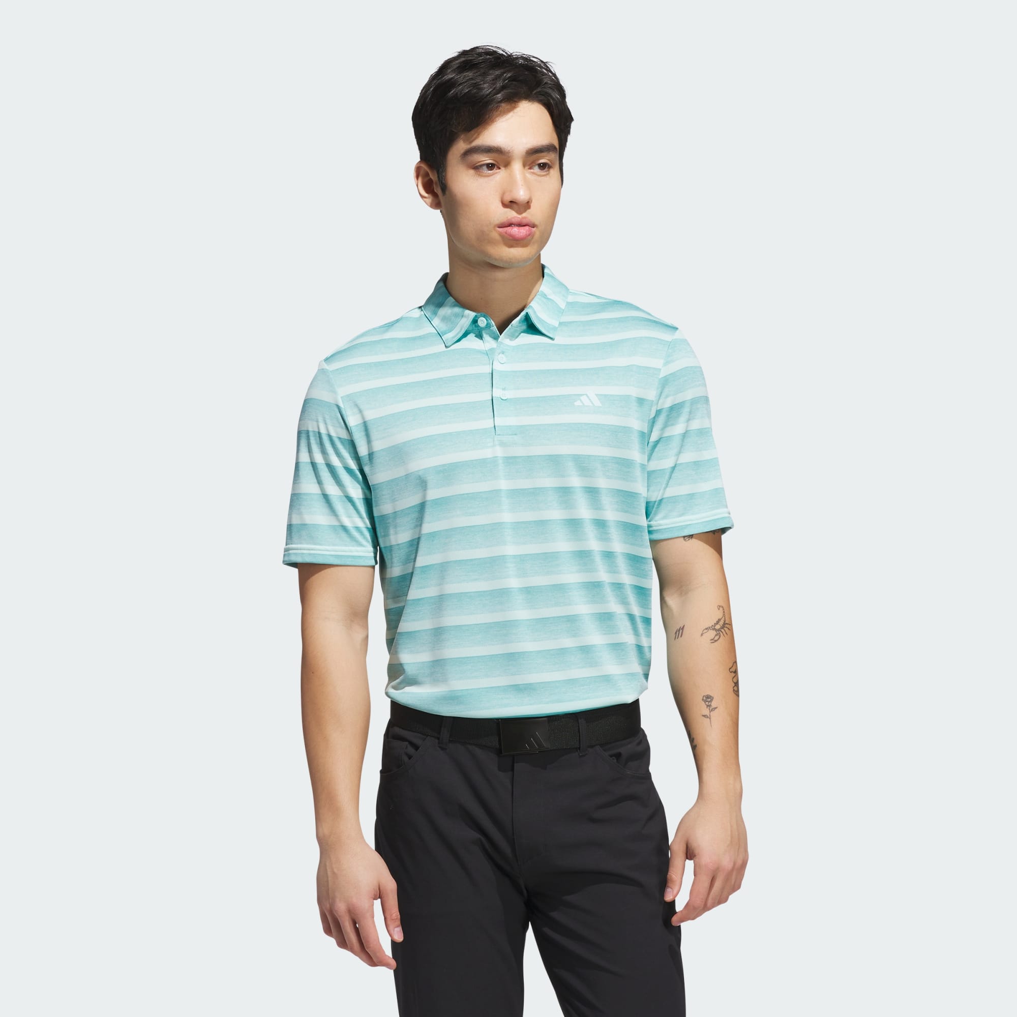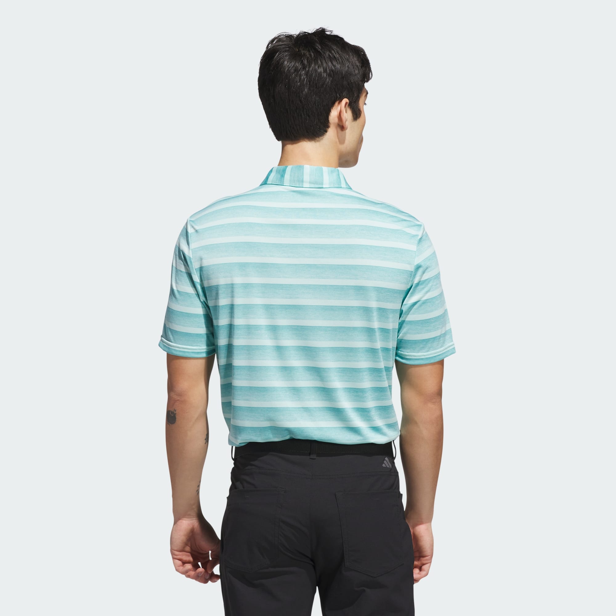 Tee off in classic style. This adidas golf polo shirt has allover stripes that elevate your look on the course. The soft piqué fabric keeps you comfortable from first drive to final putt. Made with 100% recycled materials, this product represents just one of our solutions to help end plastic waste.