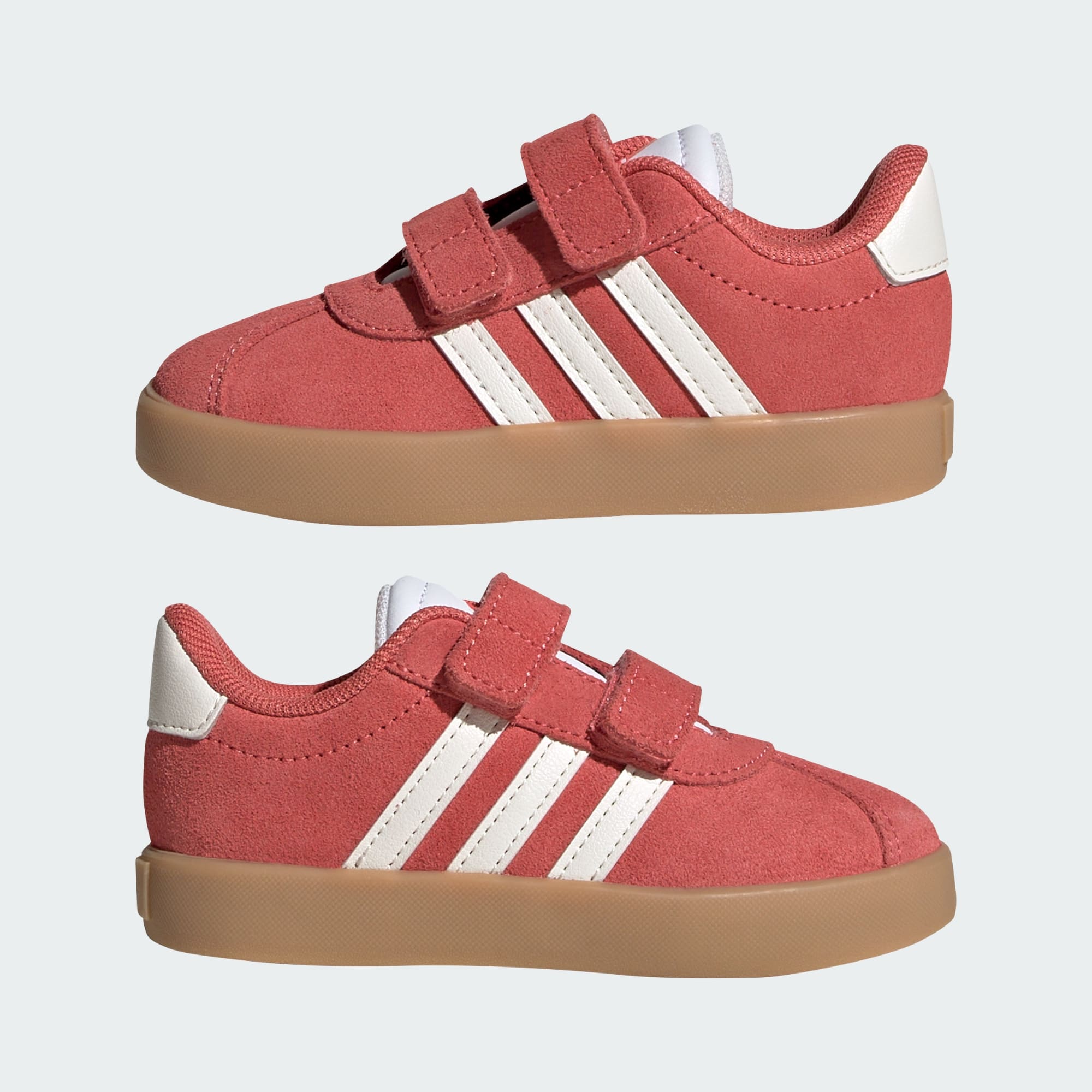 Adventure ready. These infant's adidas shoes have adjustable hook-and-loop straps so you can get them on and off in a flash, perfect for feet that don't want to stop moving. A synthetic upper, textile lining and vulcanised rubber outsole come together to keep their feet comfortable whether they're learning to stand, cruise or play.