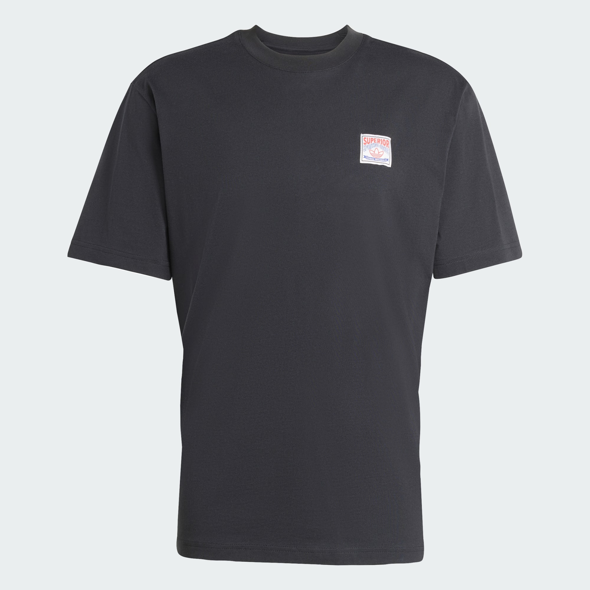 A short-sleeve t-shirt with adidas graphics on back.