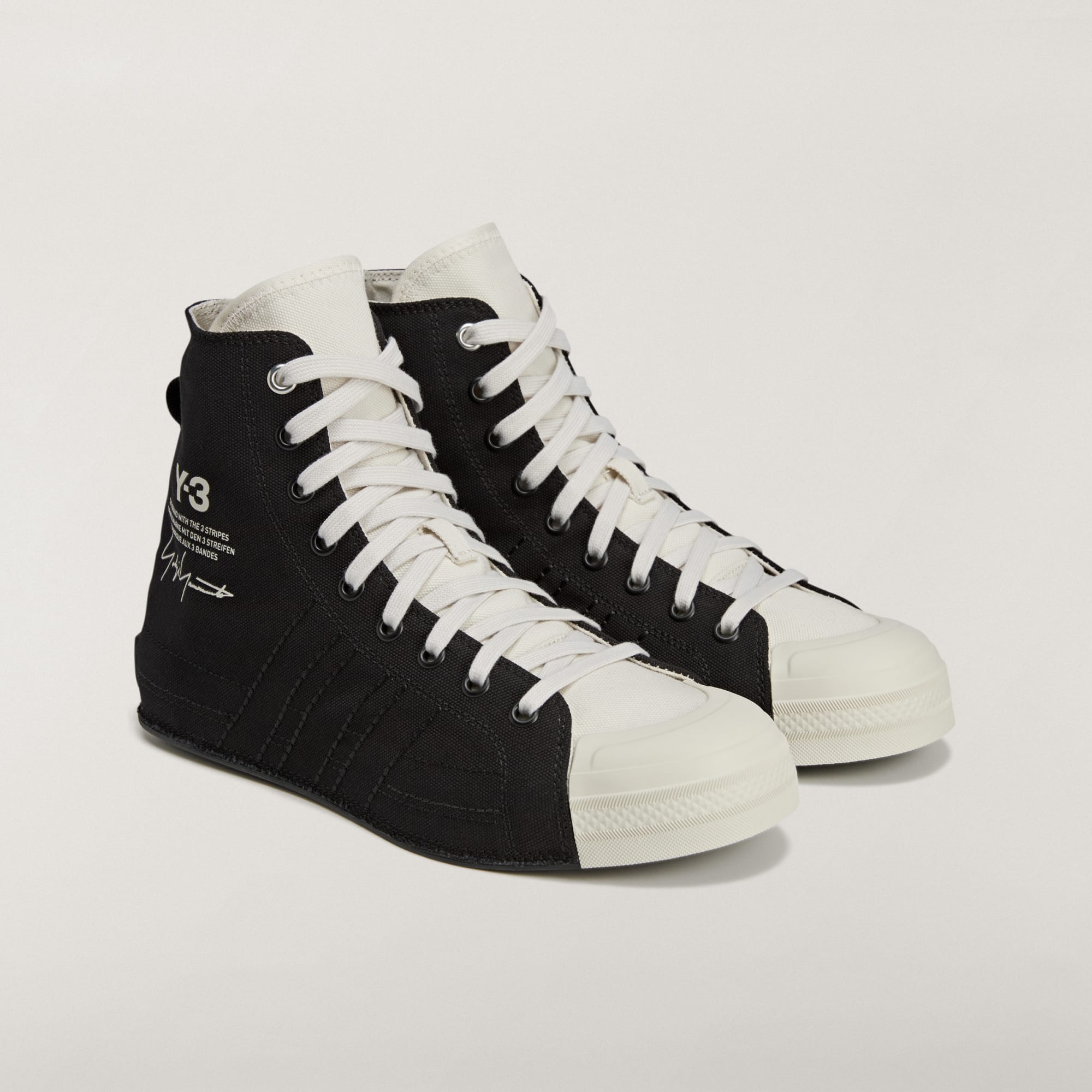 Y-3 once again disrupts adidas DNA to bring us a reimagining of sport style. The Y-3 Nizza Hi shoes completely reinterpret the adidas Nizza with a canvas upper that extends all the way to the outsole. In addition to classic details of the court silhouette, this version introduces a canvas and suede lining plus a removable Lightstrike midsole that elevate the sensation and energise it with running shoe-like responsiveness. Finishing touches include a Y-3 stacked logo graphic on the side and a Yohji Yamamoto signature on the heel patch.